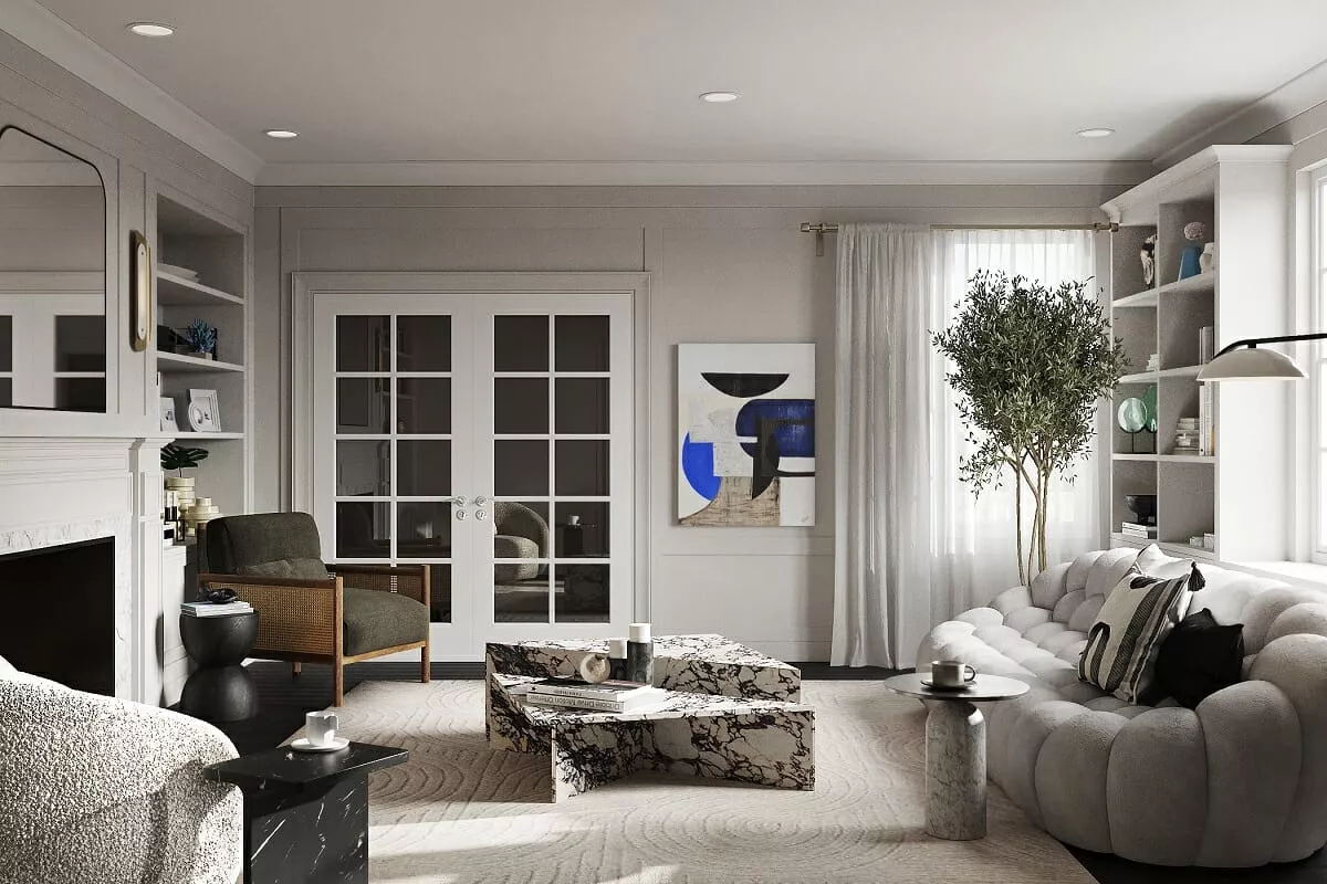 Chúng tôi thấy nhiều nội thất hơn hoặc ẩn tivi hoặc thiết bị đa phương tiện khỏi tầm nhìn. Màn hình thông minh chuyển sang màn hình nghệ thuật khi TV không được sử dụng. Các phòng khách hợp thời trang đang tập trung vào chức năng chính của chúng – giao lưu và thư giãn.